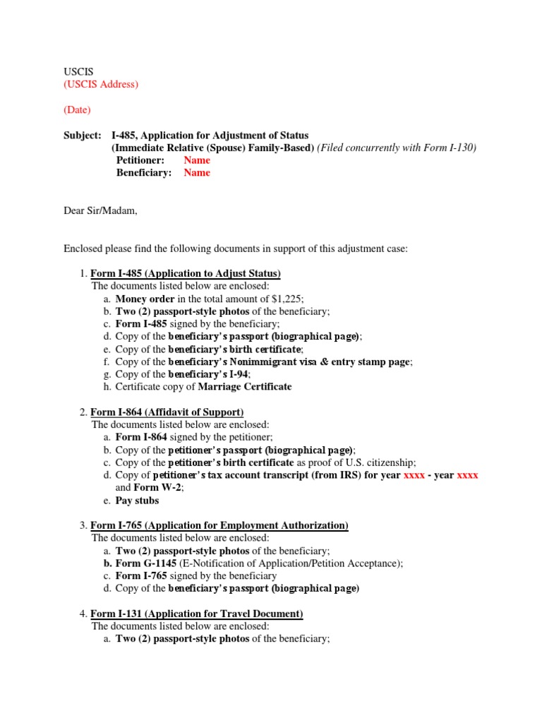 To whom it may concern: I got married to my petitioner richard glenn storm last march 24, 2010. It's just a basic structure that will not give you too much trouble. Immigration application requirements and processing, we also let you know the required application documents, evidence, procedures, samples of petition cover letter and sample of employment letter, samples of required forms and optional forms, an application check list, and detailed explanation of the form i. Enclosed, please find my adjustment of status application for (name), the beneficiary, and (name), the petitioner and u.s.